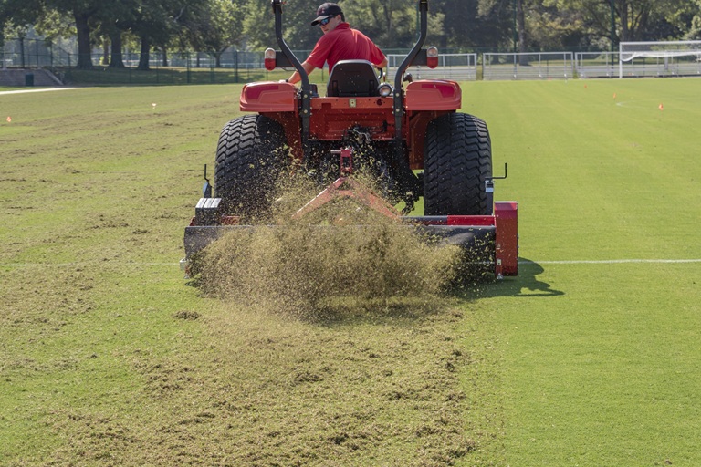 Turf Stripper võimaldab töödelda pindu alates kergest pinnalõikusest kuni palja mulla avamiseni. Masin eemaldab põhjalikult murukihi ülemise osa, kulu ja umbrohu. See parandab seemne ja mulla kontakti ning vähendab konkurentsi, soodustades tervet järelkasvu.